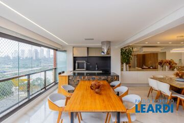 Experimente o prazer de viver em um magnífico apartamento de 167 m², decorado com muito bom gosto. Este espaço conta com 3 dormitórios sendo 2 suítes e um banheiro para o terceiro dormitório, todas com piso de porcelanato, armários planejados e ar-condicionado, garantindo o máximo conforto. O living para três ambientes, também com ar-condicionado e piso em porcelanato, se integra perfeitamente ao terraço gourmet, que possui churrasqueira, ideal para momentos inesquecíveis com a família e amigos. O apartamento ainda oferece um lavabo, uma cozinha repleta de armários e uma lavanderia espaçosa com quarto e banheiro para funcionários. Além disso, você terá à disposição um depósito e três vagas de garagem exclusivas, completando essa oferta excepcional. O condomínio se assemelha a um verdadeiro clube, com uma ampla oferta de lazer e serviços. São três salões de festas, quatro piscinas (duas cobertas e aquecidas), uma academia de alto padrão, sala de ginástica, tatame, duas quadras de tênis, quadra poliesportiva, gramada, além de duas brinquedotecas, home office, sala de TV, sauna e salão de jogos. E ainda, um salão de cabeleireiros e um mini mercado com pães fresquinhos! A localização é imbatível, cercada por escolas renomadas como Pueri Domus, Elvira Brandão, Objetivo, Etapa e Porto Seguro. A apenas 5 minutos do Shopping Morumbi e próximo ao Parque Burle Marx e à Praça Severo Gomes, você estará perto de tudo o que precisa. O fácil acesso às principais vias, como Marginal Pinheiros, Berrini, Avenida Santo Amaro e Vereador José Diniz, tornará sua rotina mais prática e agradável.