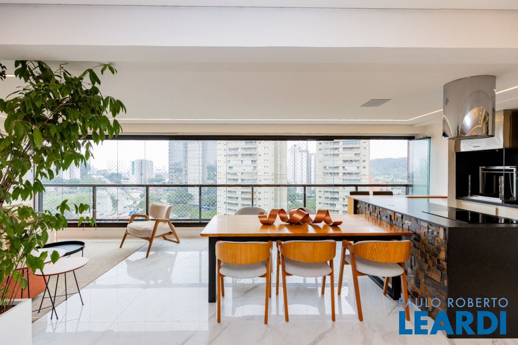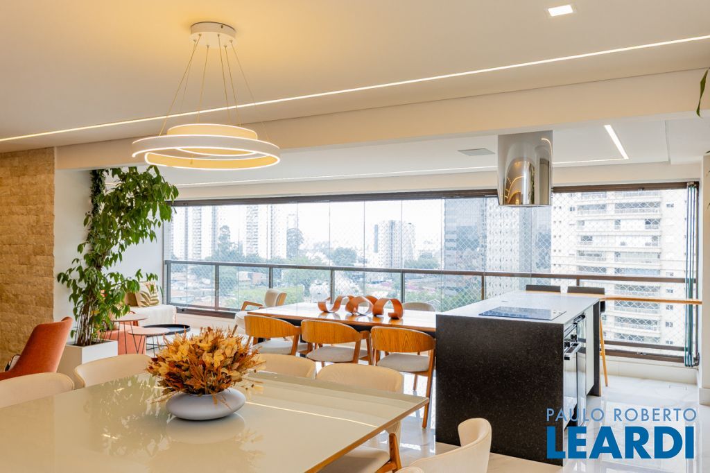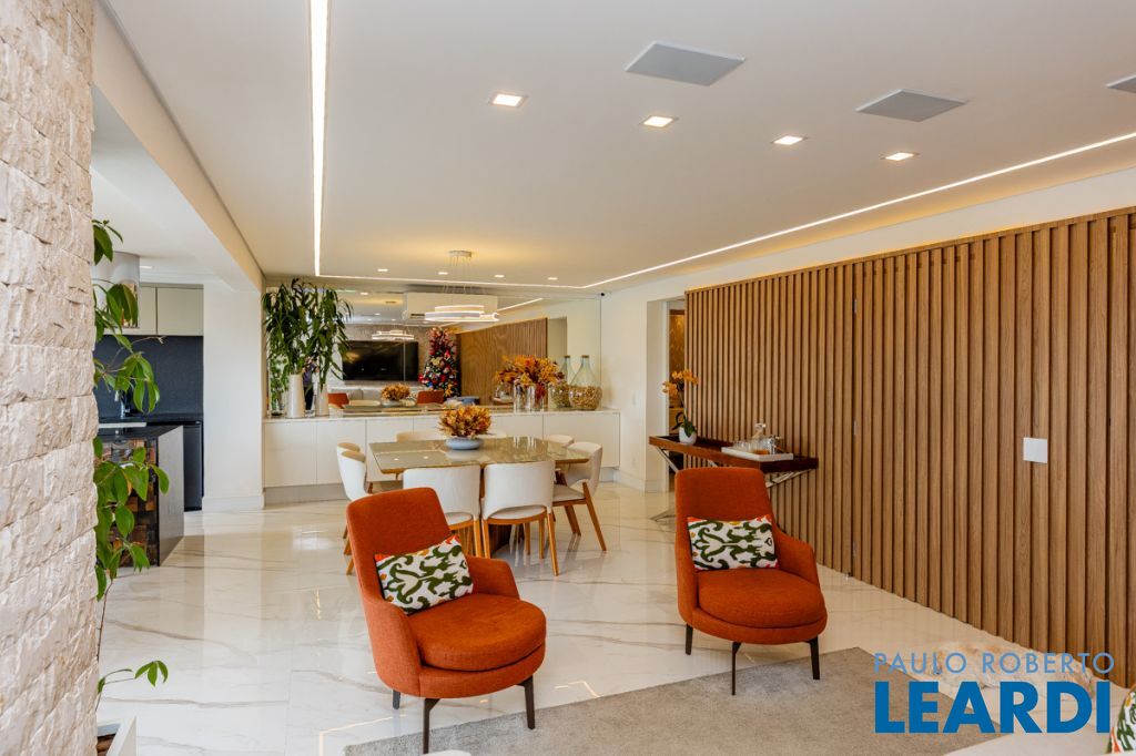 Apartamento de 209m² totalmente reformado, com planta moderna e muito bem distribuída, oferecendo três suítes, escritório, living ampliado integrado a varanda gourmet, proporcionando conforto, sofisticação e funcionalidade. O imóvel conta com automação residencial completa, controlada por aplicativo e comandos de voz, integrando iluminação, equipamentos e rotinas personalizadas. As luzes são dimerizáveis e o sistema inteligente de recirculação de água quente e fria garante conforto térmico imediato e eficiência no dia a dia. Possui home theater DENON 7.2 com caixas acústicas embutidas, subwoofer dedicado, preparo para conteúdo 8K e operação em duas zonas independentes, atendendo sala e varanda. A suíte master oferece sistema de som exclusivo no banheiro. O controle de acesso é realizado por biometria e senha nas duas portas principais, além de sistema de alarme inteligente com sensores e botões de pânico. A porta principal do hall é blindada. A marcenaria sob medida está presente na cozinha, sala, escritório, roupeiro e em todos os dormitórios. O escritório é completo, preparado para duas posições de trabalho, ideal para home office de alta performance. Conta ainda com sistema de CFTV nas áreas comuns, com gravação local e em nuvem. O condomínio oferece estrutura de lazer completa, com piscinas, academia, quadras esportivas, salões de festas, brinquedotecas, sauna, salão de jogos, home office, salão de beleza e mini mercado. Localização privilegiada, próxima a escolas renomadas, shopping, parques e com fácil acesso às principais vias da região.